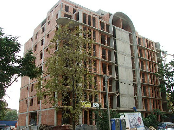 In the site, as per the built prescription with suitable forming, a close line building of 63 flats was built, with a basementfloor and with garage on the groundfloor.