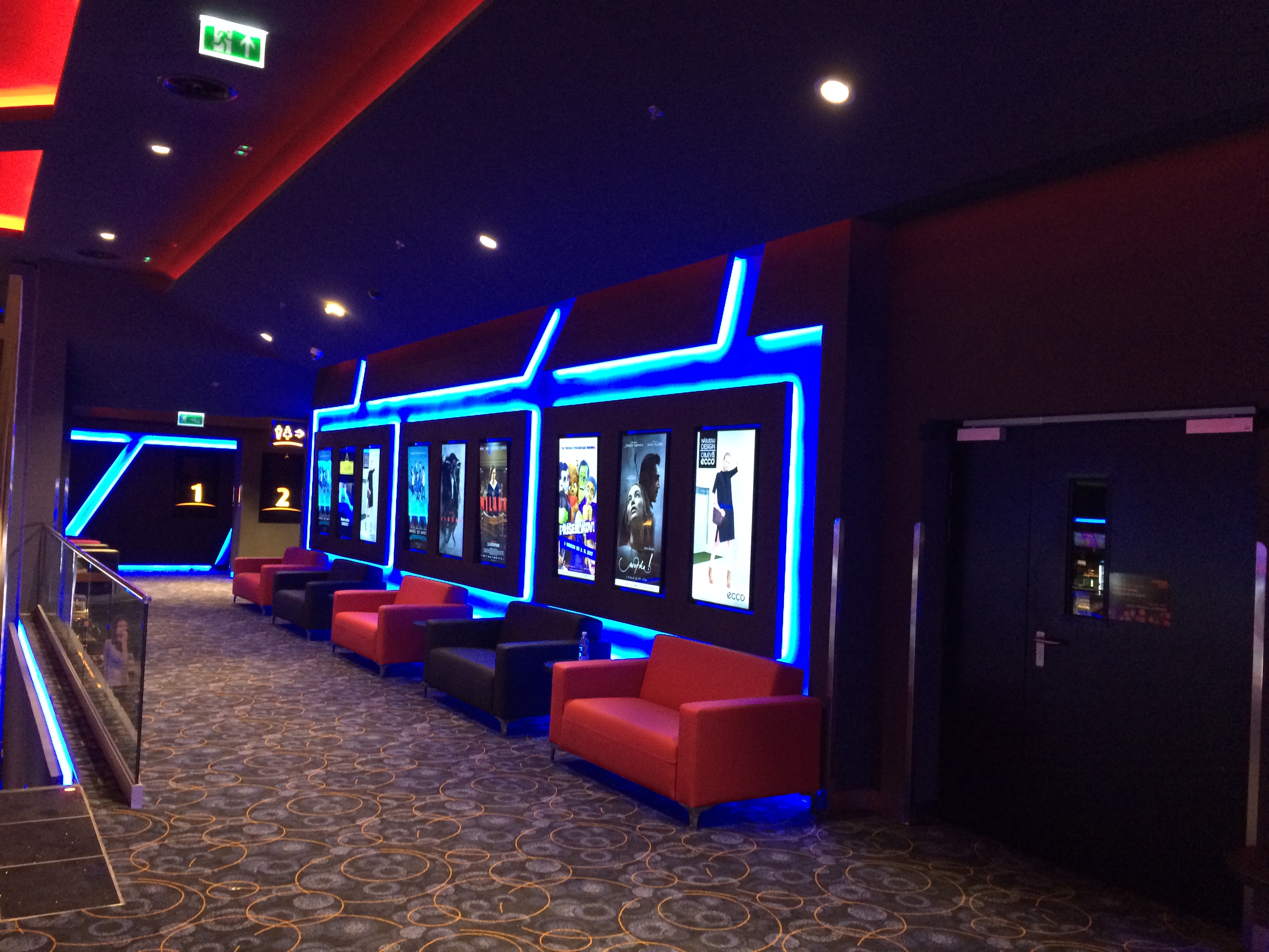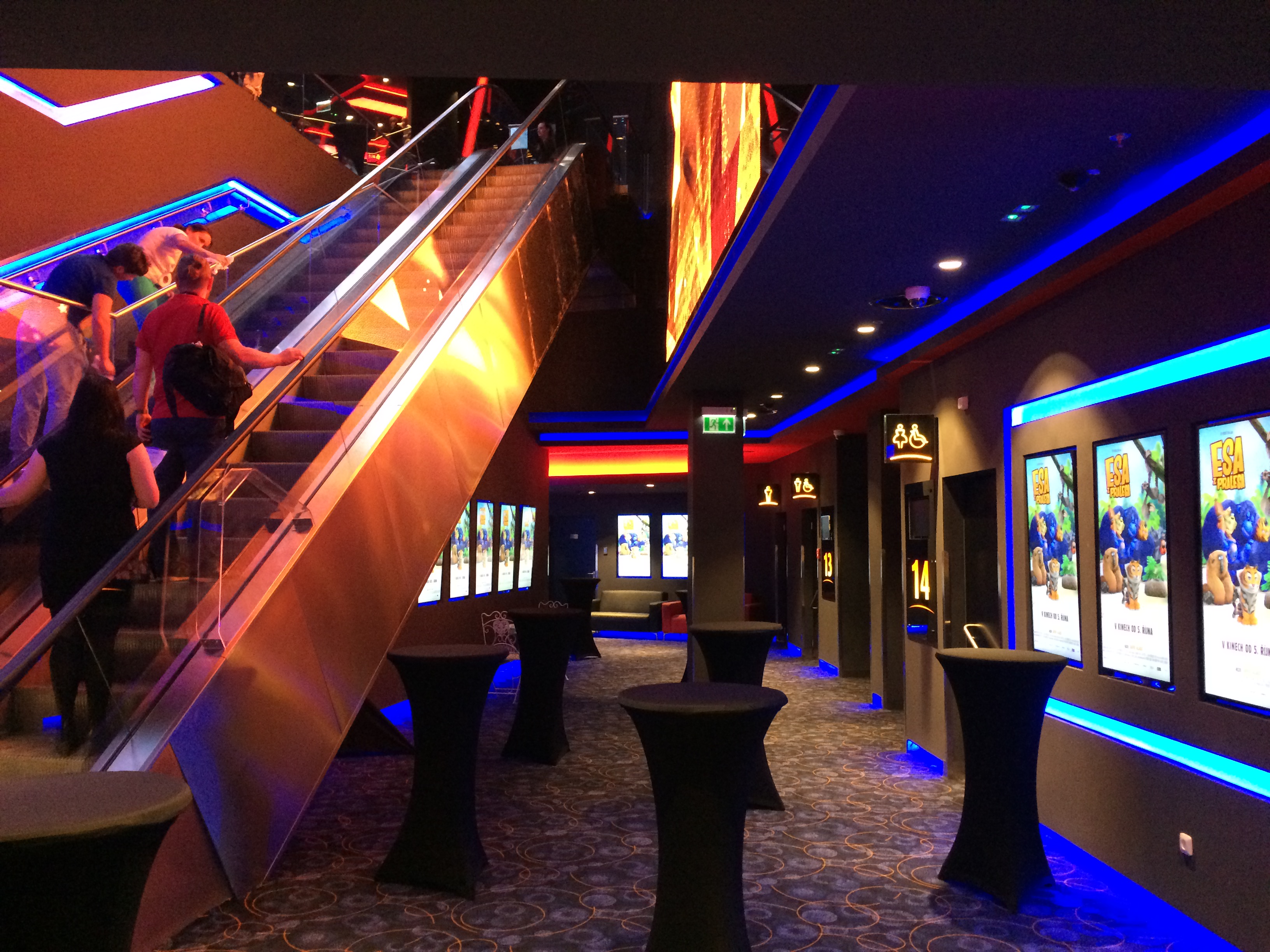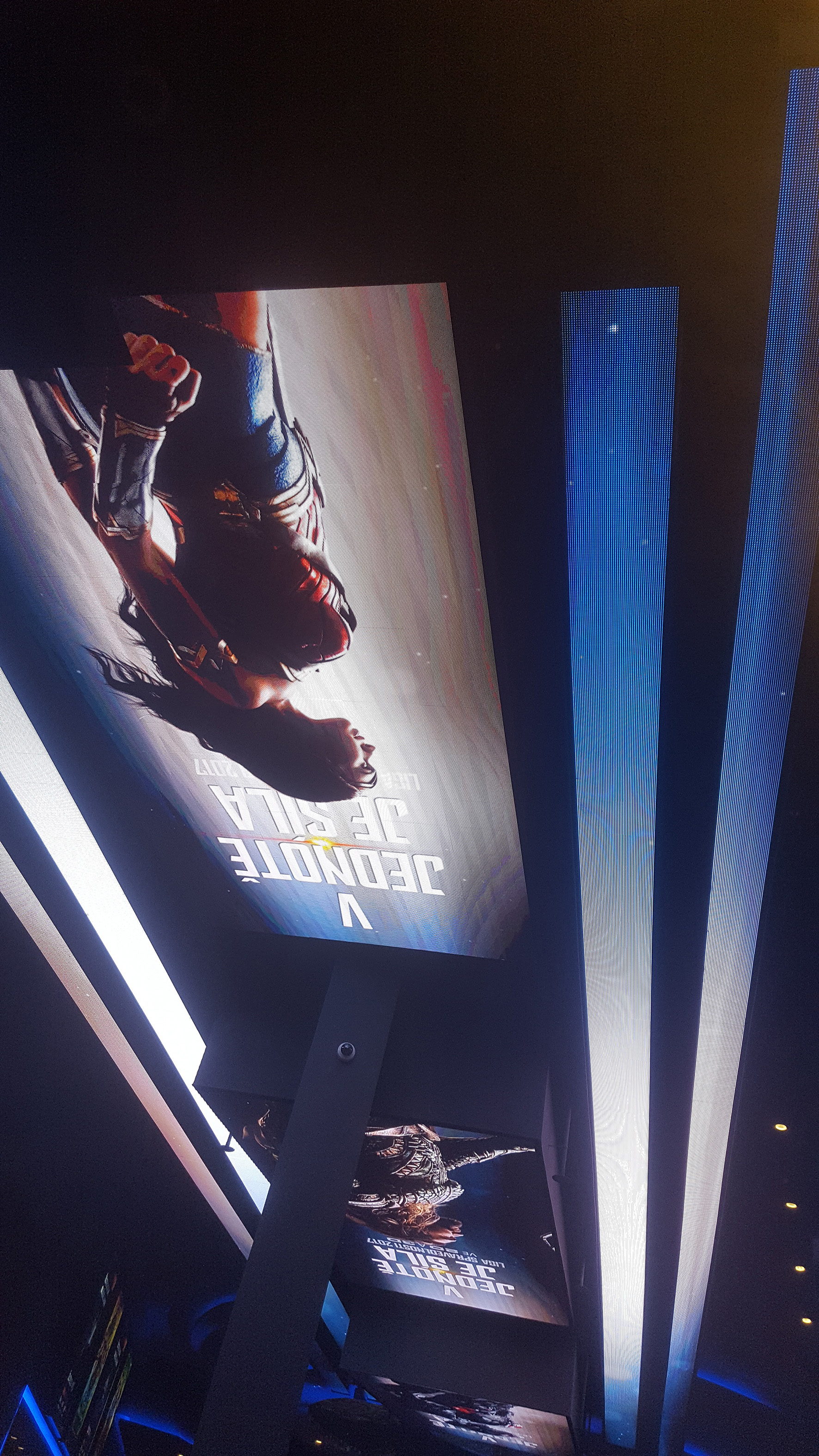 Cinema City Chodov is placed in the high end extension of an existing shopping mall. There are new technology design elements in the cinema lobbies, such as water screen fountain, video screens on the ceilings and walls, suspended video screens in the mall etc. The cinema contains 4 different lobby levels, 4 bars, 14 regular halls with 2400 seats, 3 VIP halls with 150 seats, a 4D cinema hall with 140 seats.