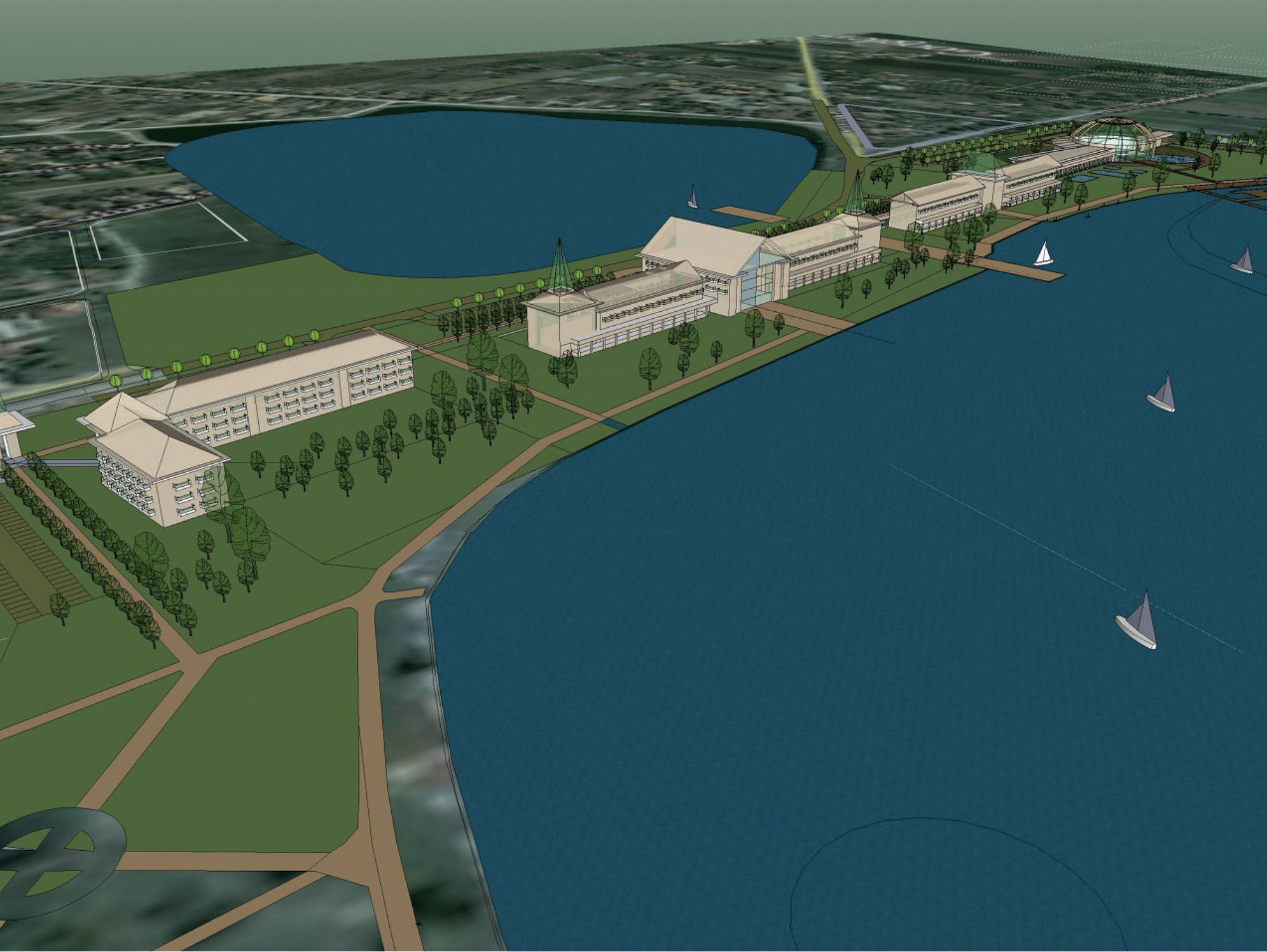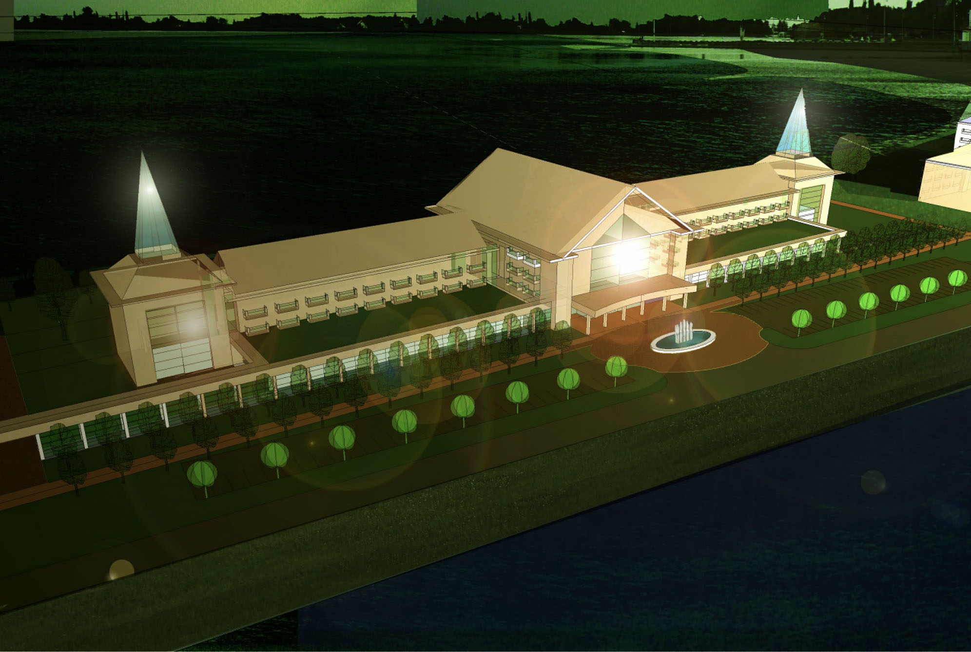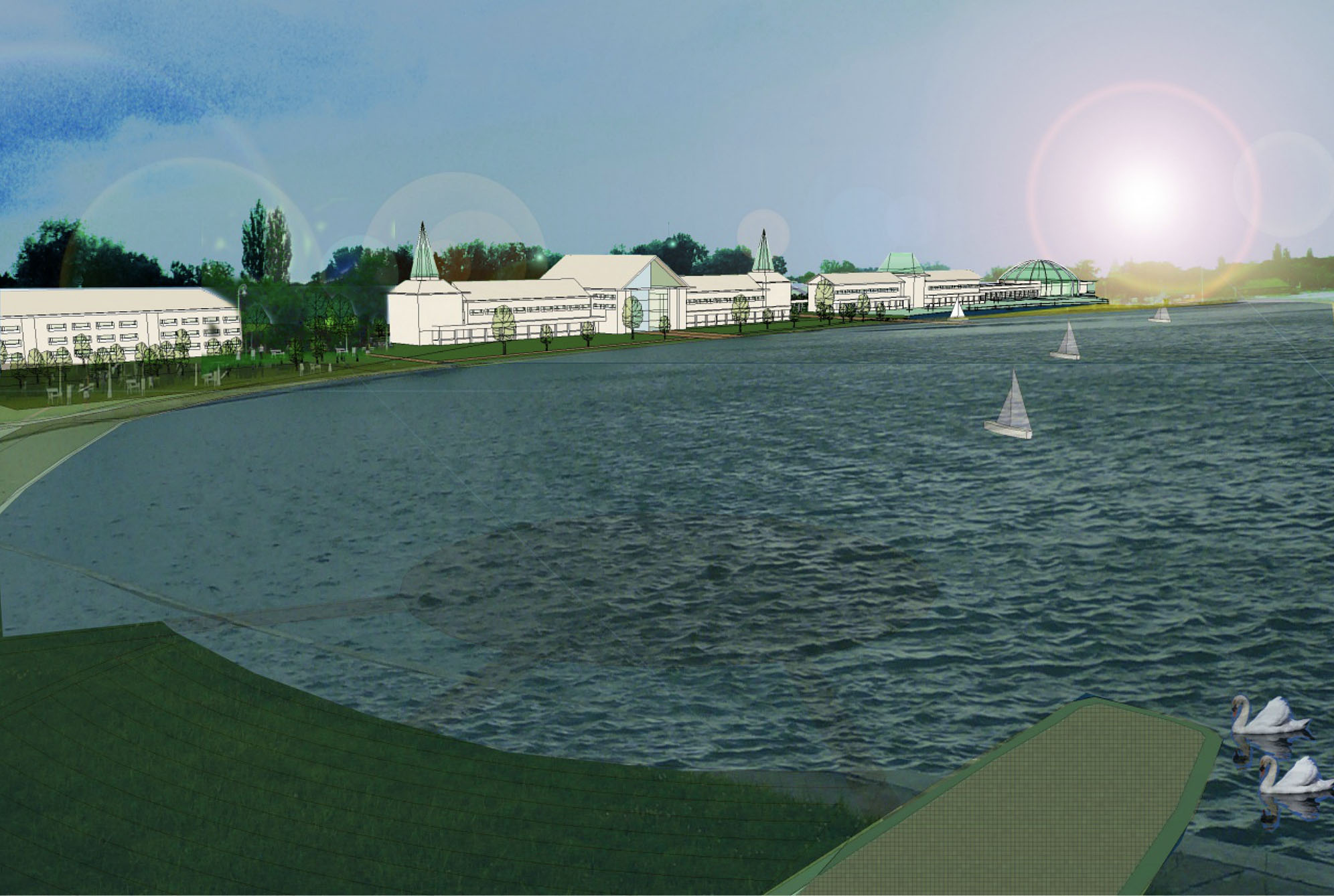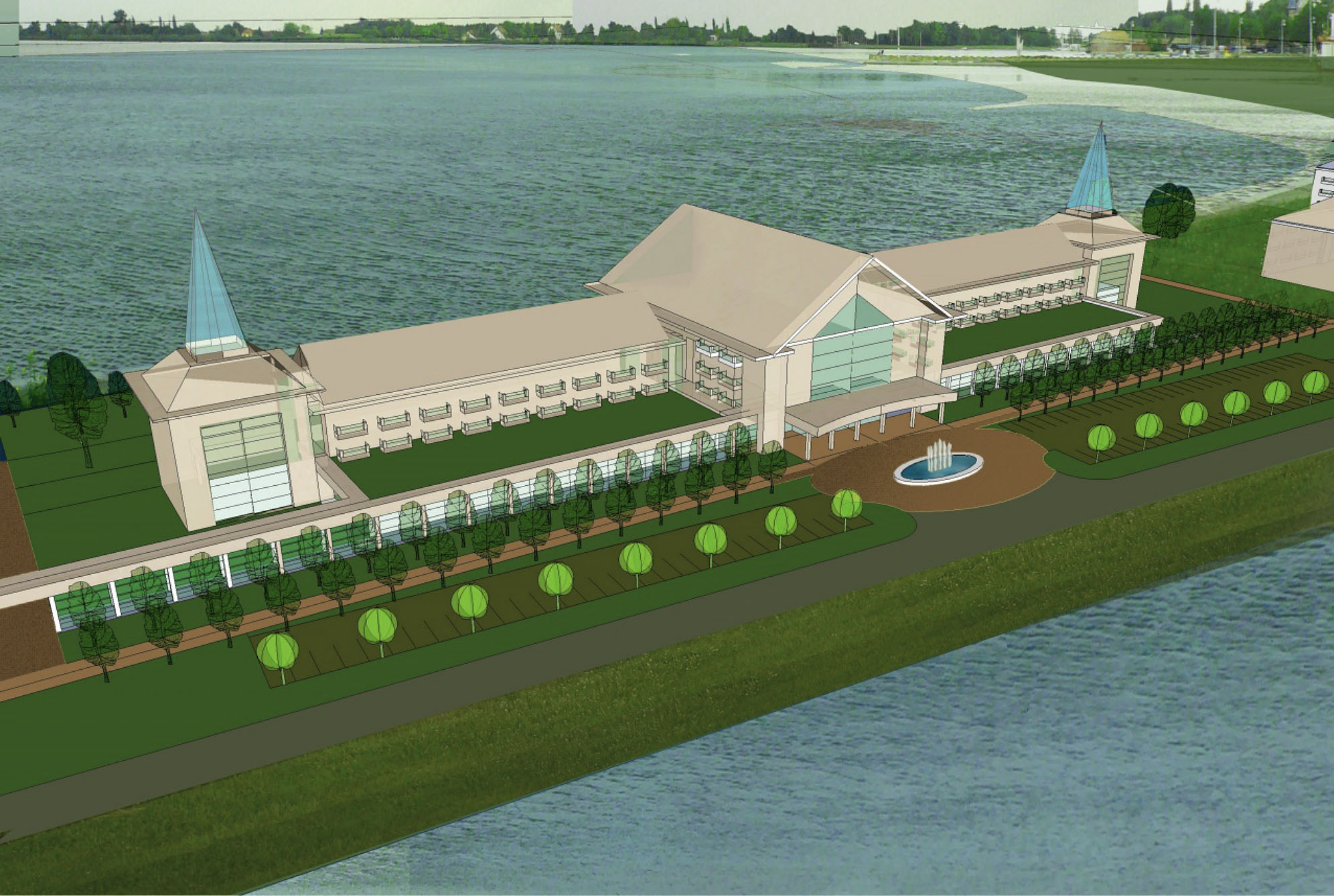 The newly developped Tourism Complex contains a 200 keys Spa and Welness Hotel*****, a Family Hotel**** , a Residential Building**** and an indoor-outdoor Aquapark. All these new facilities are organized along a new pedestrian axis.