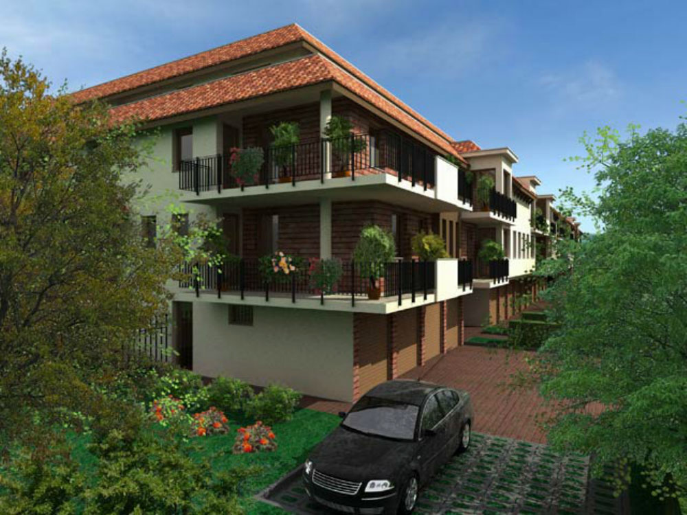 In the site, as per the built prescription with suitable forming, a close line building of 63 flats was built, with a basementfloor and with garage on the groundfloor.