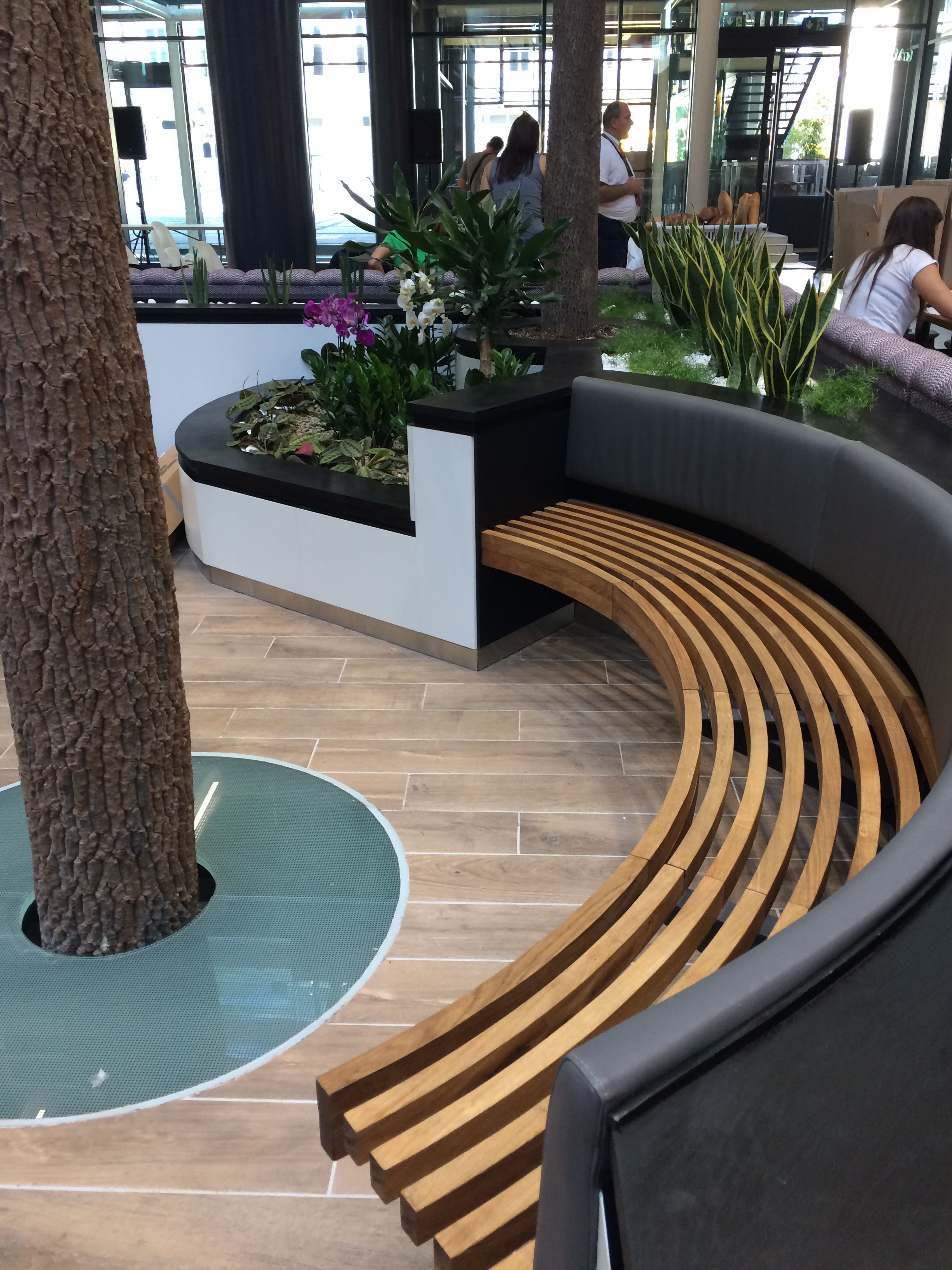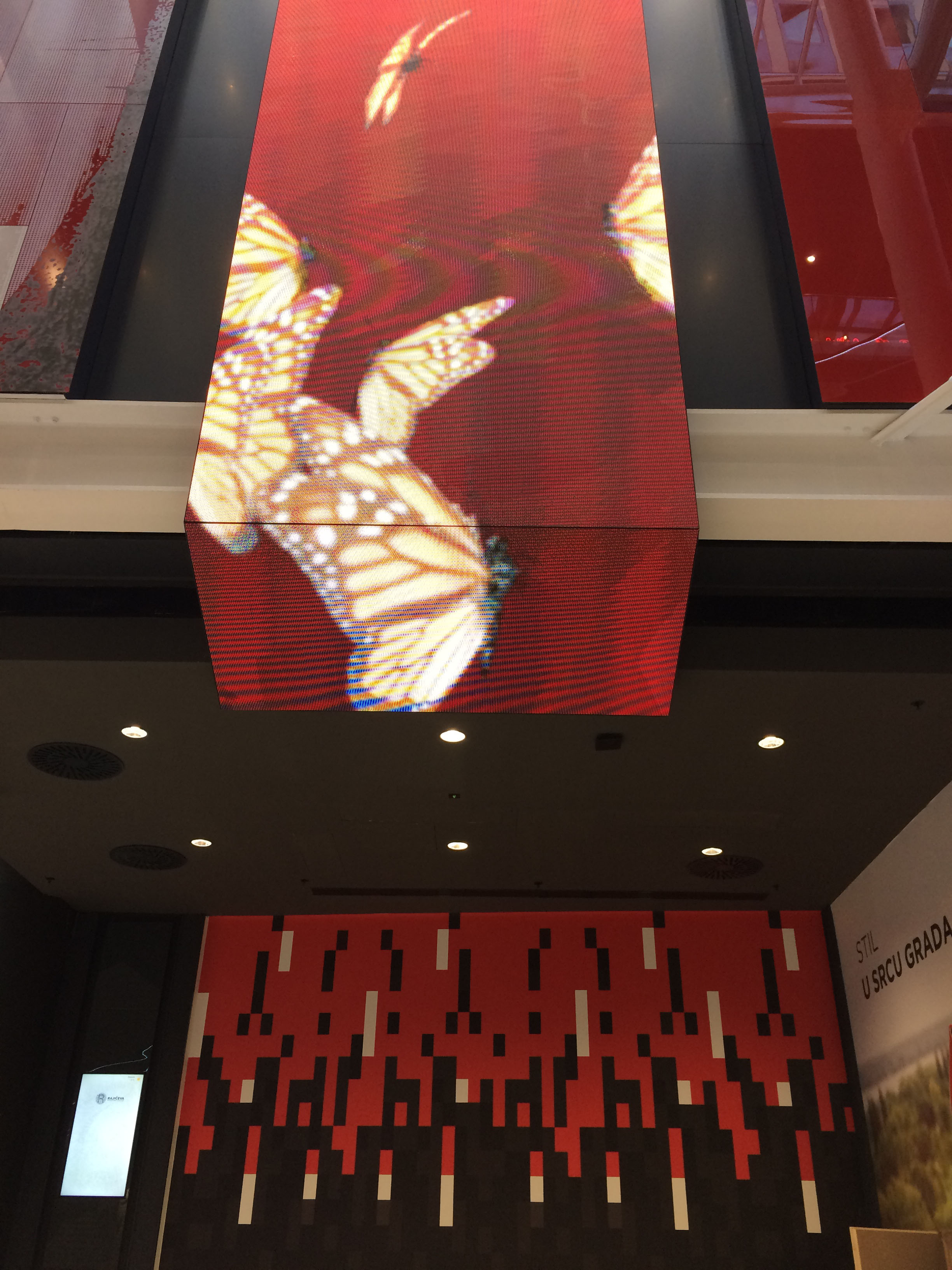 The exterior and Interior works together by continuance elements as columns, beams , lighting fixture and colors goes in and out. Casiopea made an exclusive all the furniture design for all elements of the mall, Including benches , sofa, sculptures of trees, kiosks and info stands. Garden design and guidelines for interior. The design focous on using media and graphics designed by Casiopea implemented into the architecture and creating special video art to the project.