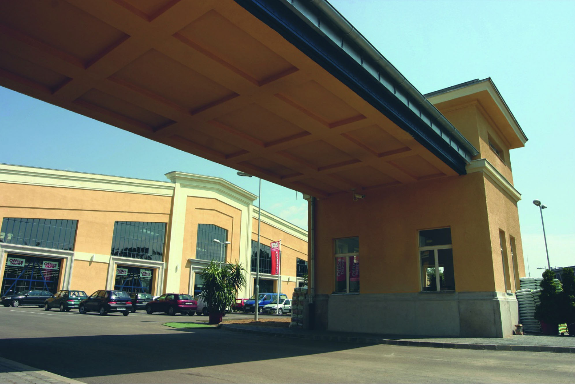 The project is the refurbishment of an existing shopping center on Szentendrei avenue in a suburban area.