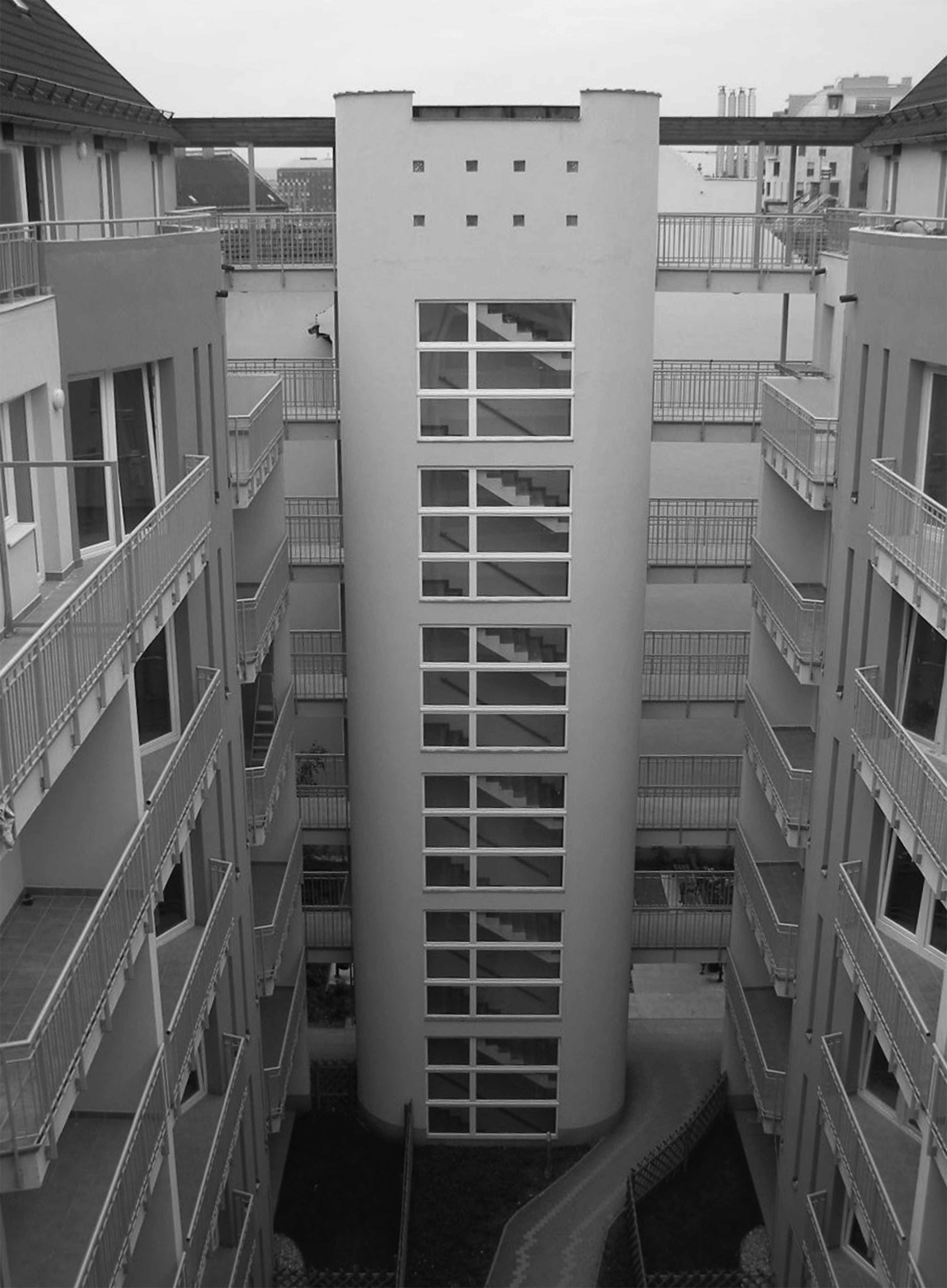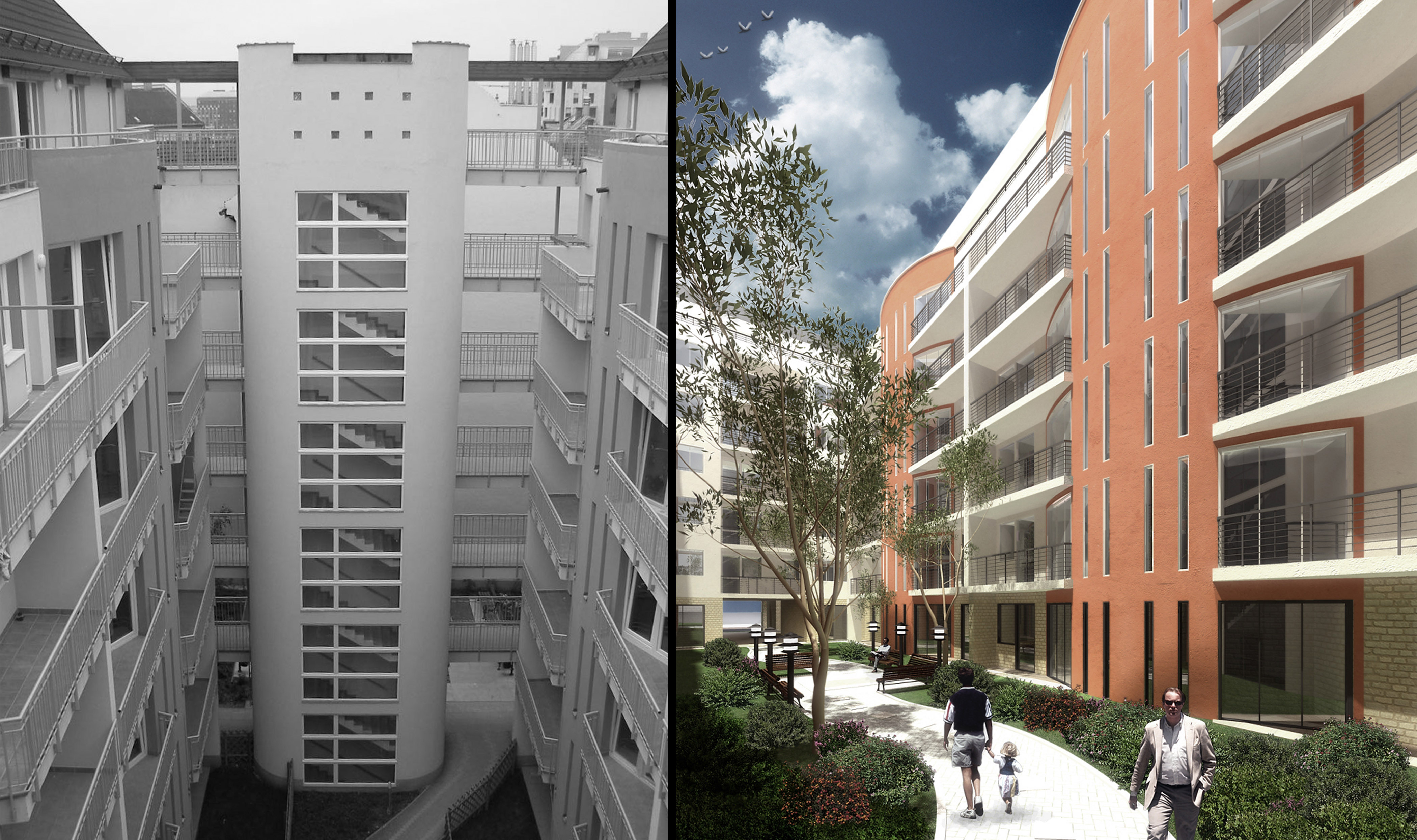 Residential building of 35 apartments in a former industrial-commercial area of the outer XIII district, today in big alteration.