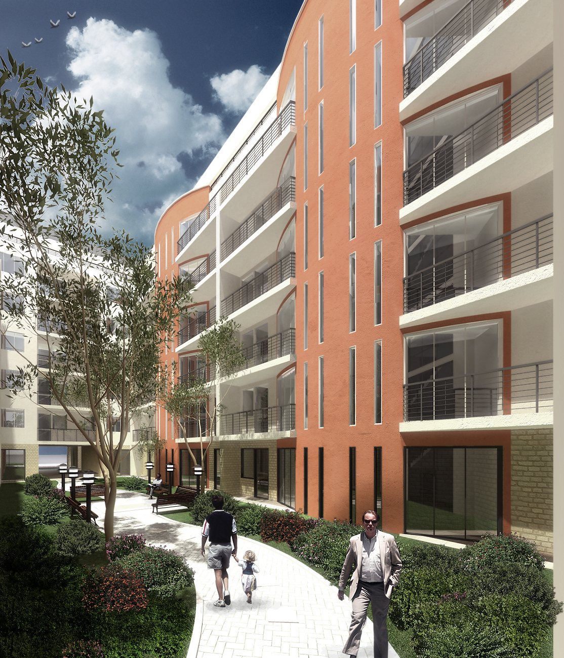 Between Lenhossék utca – Márton utca plot as per the built regulations with suitable forming planned 240 block of flats, in the basement floor with hall garage, in the groundfloor also with flats and on the street side with 4 shops