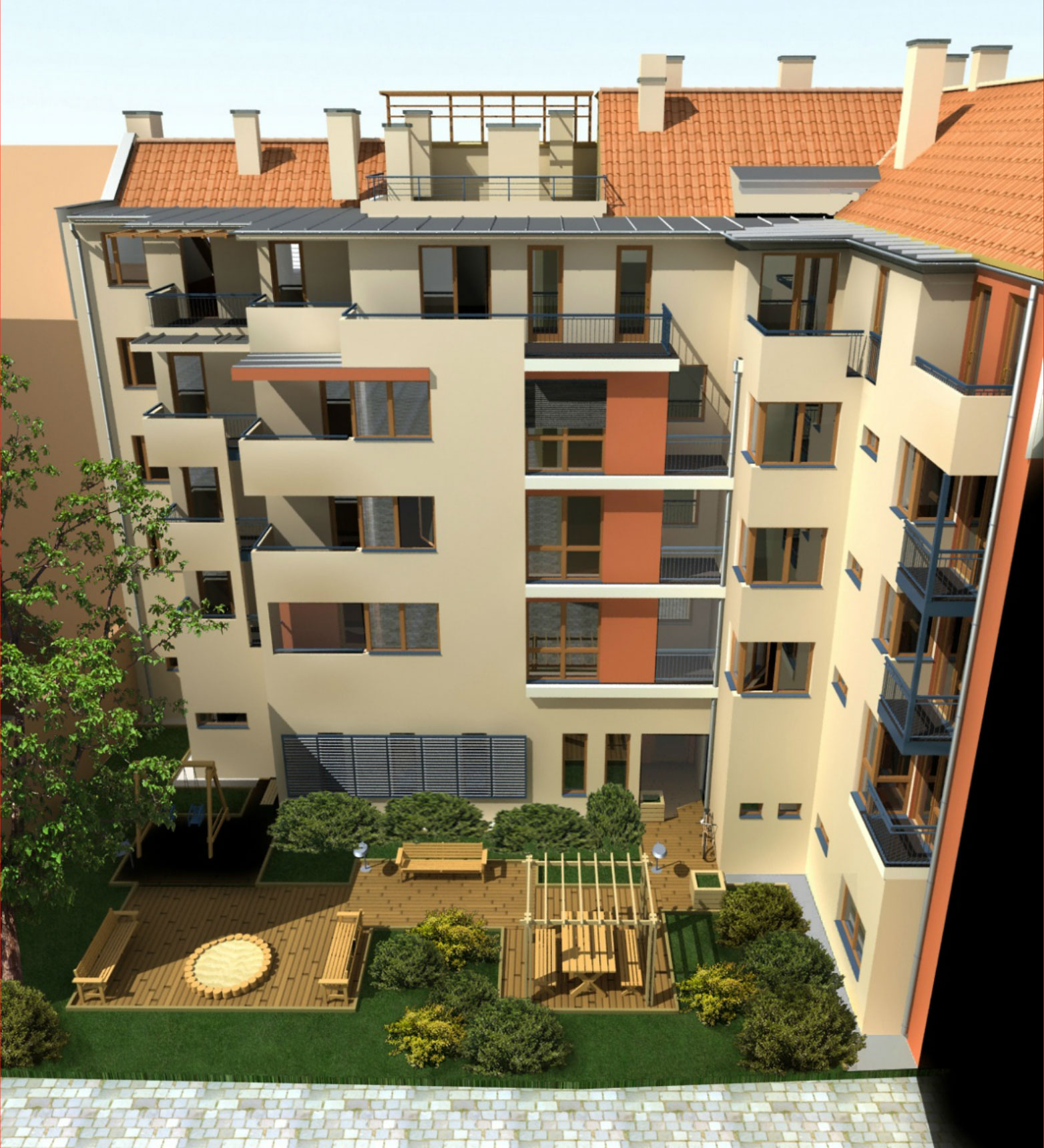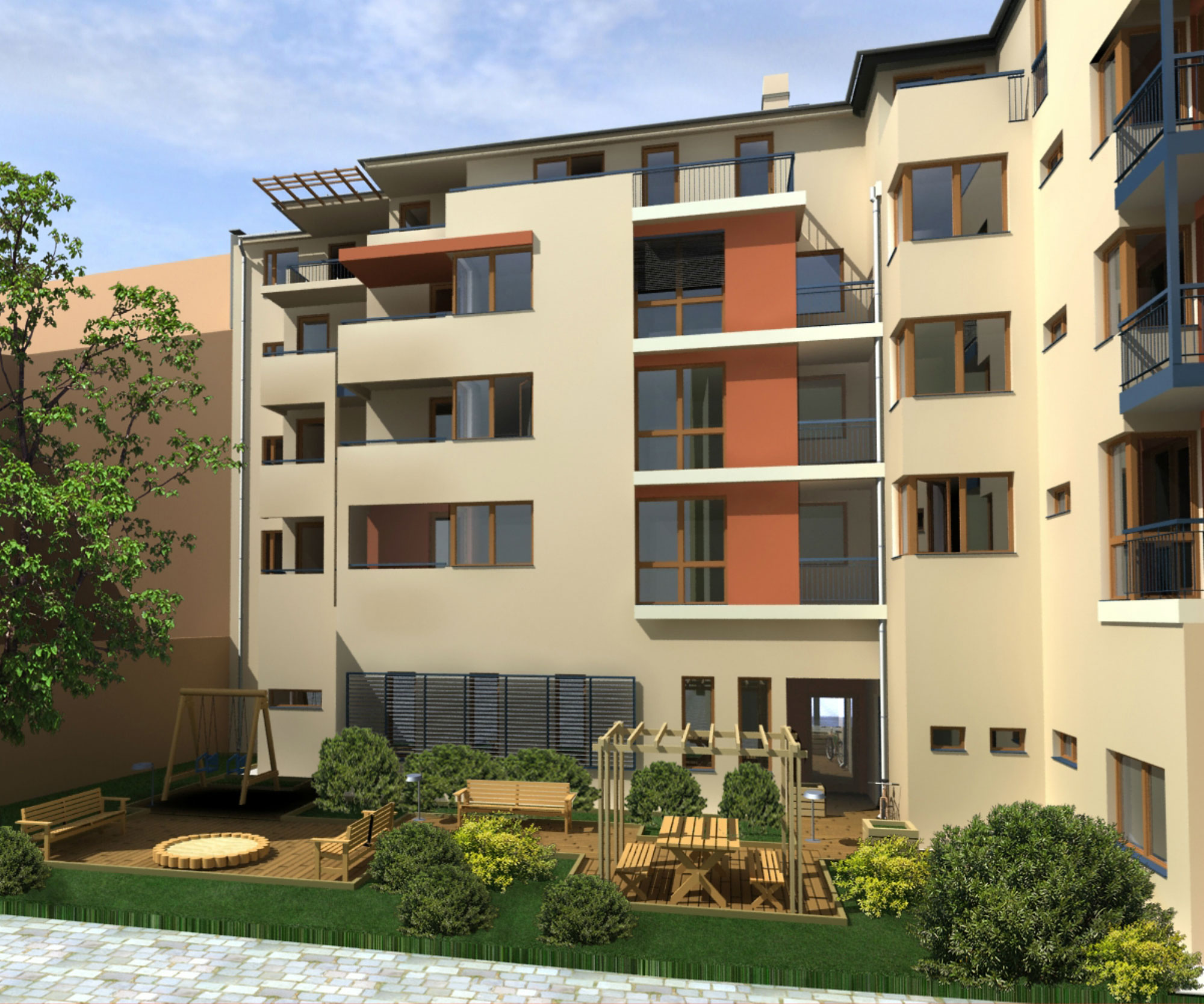 The project is situated in the renewing surroundings of IX. District providing facilities for wide variety of age groups, from young singles to families with several children.