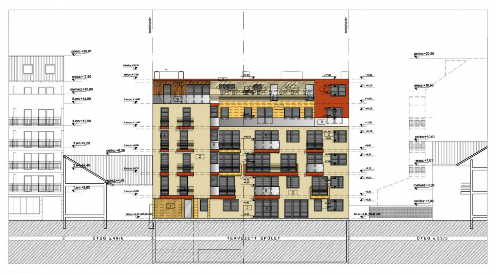 On the plot as per the built regulations with suitable forming planned a residential building of 43 flats, with hall garage in the groundfloor.