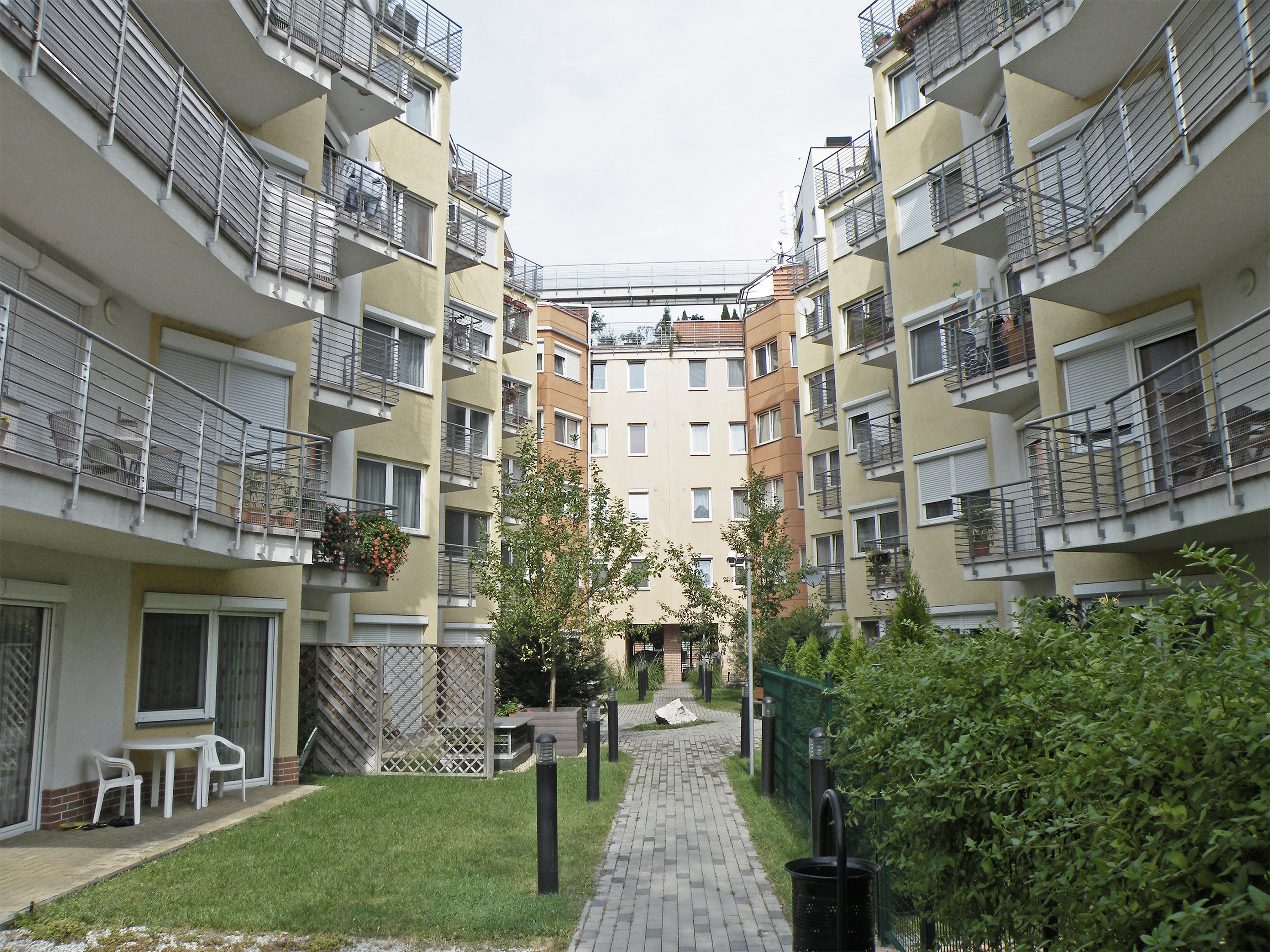 The residential park is situated a silent side street in the renewing surroundings of VIII. District. Most of the apartments have balconies.