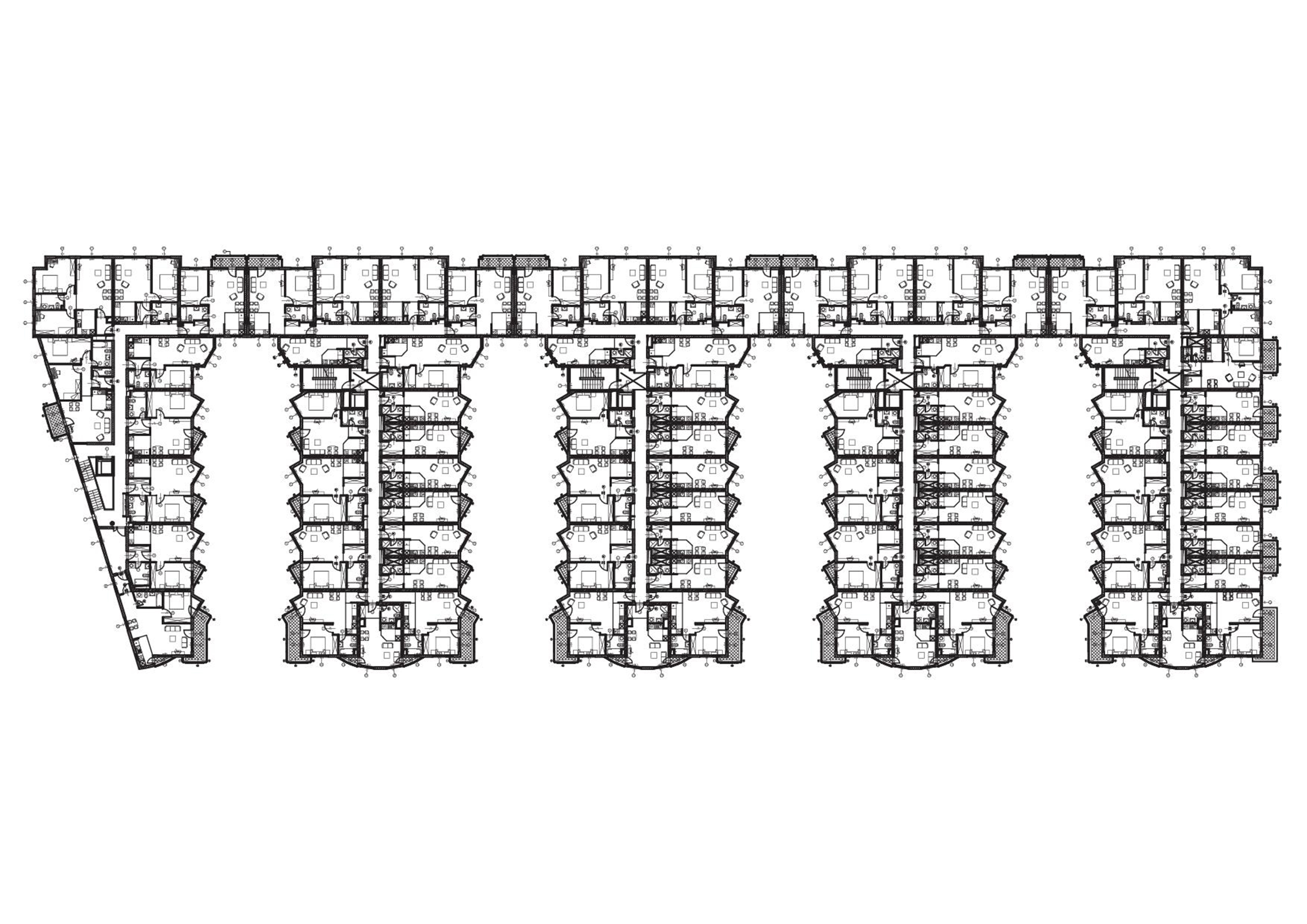 On the plot as per the built regulations with suitable forming planned a residential building of 43 flats, with hall garage in the groundfloor.
